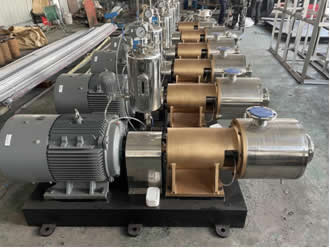 高剪切分散乳化設(shè)備不是一般的混合設(shè)備。在批次混合工藝中,轉(zhuǎn)子高速旋轉(zhuǎn)所產(chǎn)生的高切線速度和高頻機(jī)械效應(yīng)帶來的強(qiáng)勁動能,使物料在定、轉(zhuǎn)子的間隙中受到強(qiáng)烈的機(jī)械及液力剪切、離心擠壓、液層摩擦、撞擊撕裂和湍流..