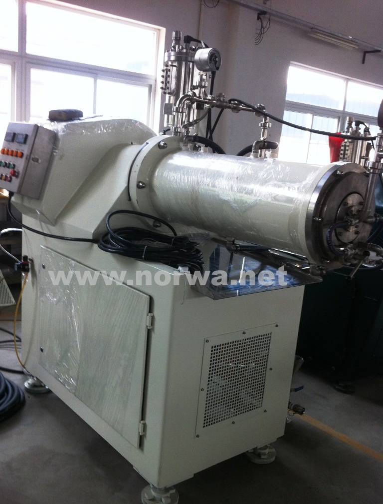 濕法研磨目前以機(jī)械方法的濕法研磨方式得到納米級粉體最有效且最合乎經(jīng)濟(jì)效益方法。它避免了化學(xué)法的納米粉體制造方法制造時的高成本,且產(chǎn)能不易放大同時和所得到粒徑分布亦較大的缺陷。同時也避免了干法研磨細(xì)度難..