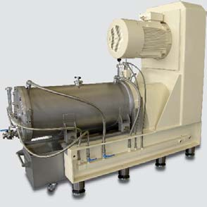 Development of the first continuous agitator bead mill Product inlet via rotor / immersion tube system prevents back flow of grinding media into the feed line.