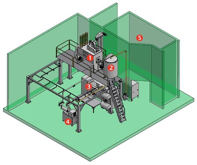 The grinding system pin nanomill shows the evolutionary develop- ment of system with the rotor-slotted pipe separating system. The enclosed horizontal agitator mill is designed for highest product throughput rates and possesses a pin grinding system for highest grinding intensity.